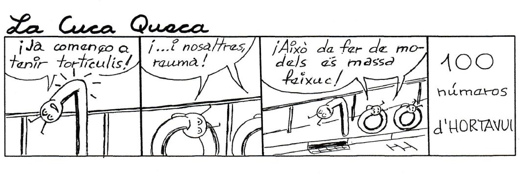 Aquestes tires còmiques van anar sortint en cada exemplar de la revista HortAvui, publicació que sortí ininterrompudament al carrer durant uns gairebé 27 anys. “La Cuca Queca” però, no va veure la llum fins al número 5 i, des d’aleshores, fins al final de la publicació no va faltar mai a la seva cita.