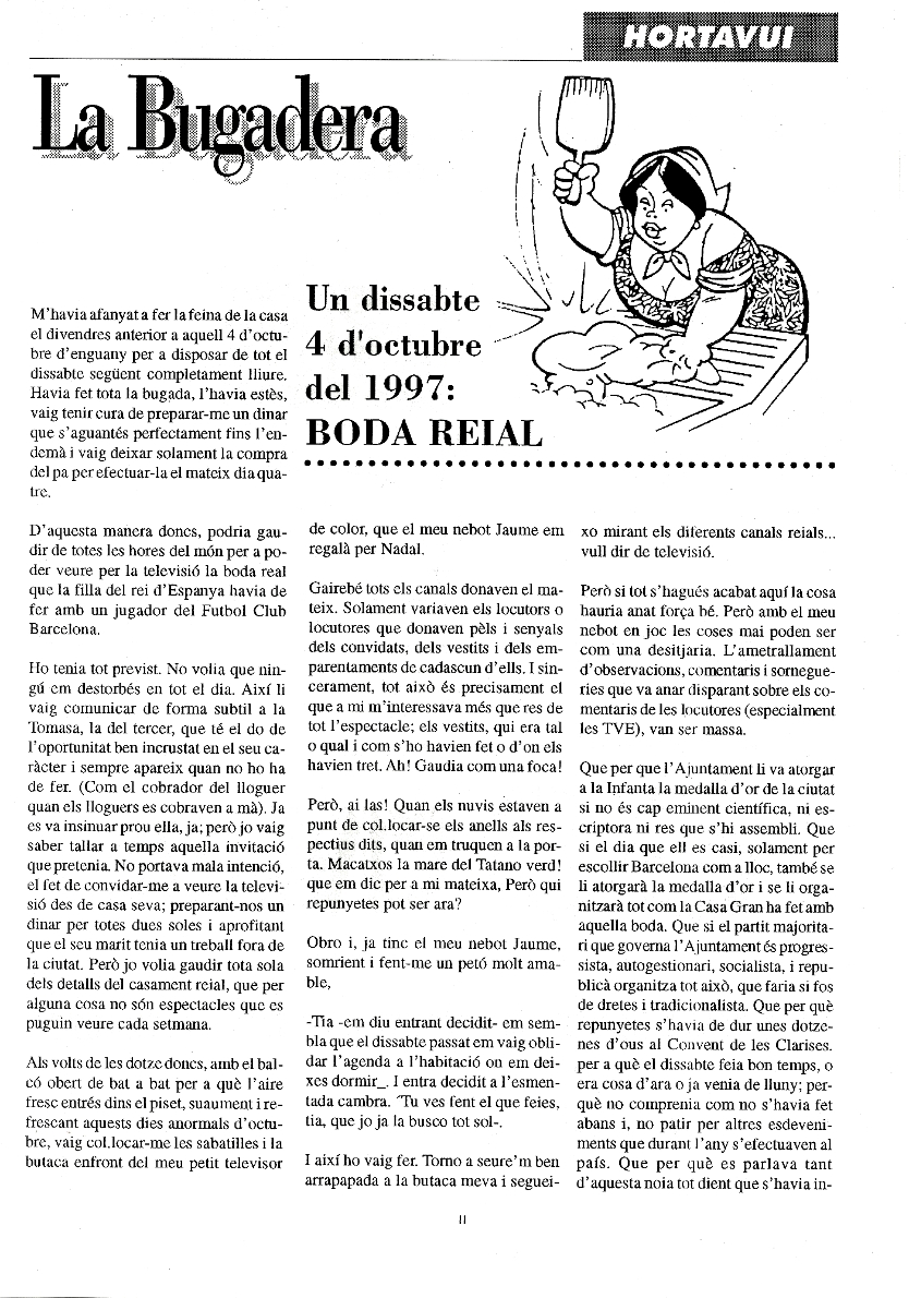 Articles dedicats a alguna curiositat d’Horta, escrits durant tots els 27 anys de la revista sota el pseudònim de “La bugadera” i desvelat l’autor, jo, en l’última revista publicada.